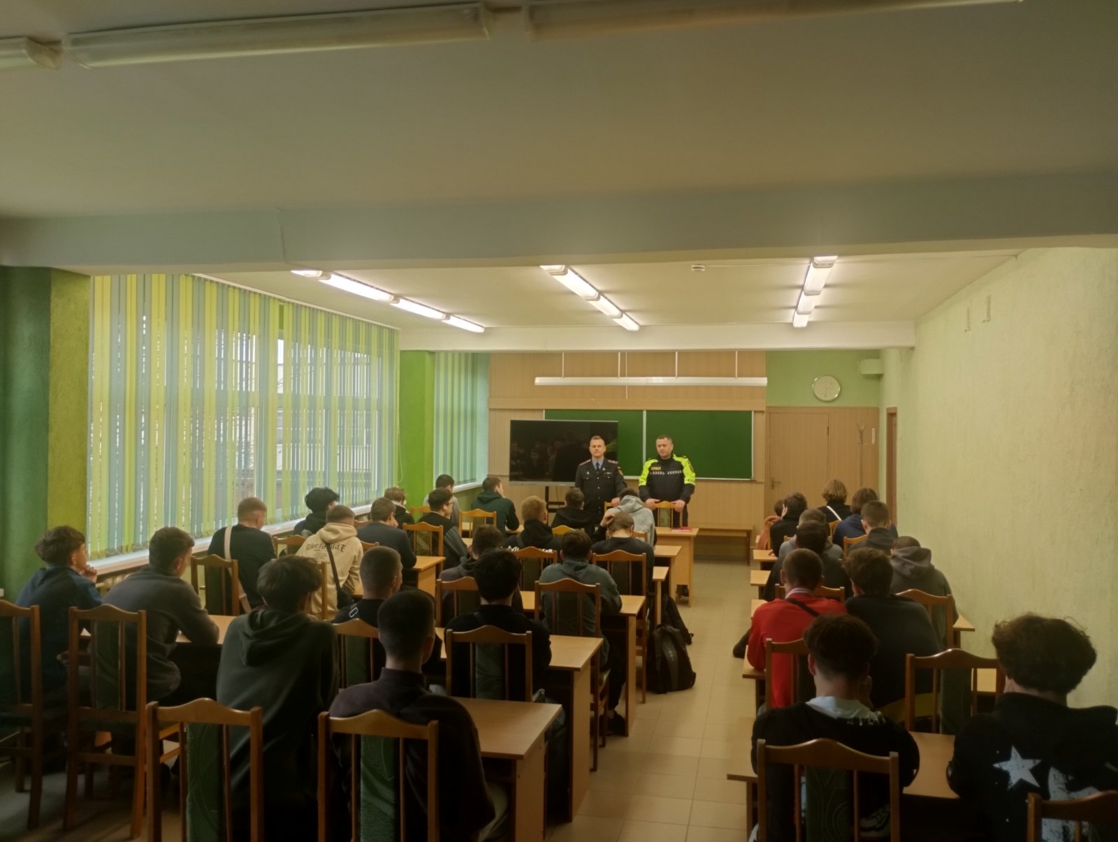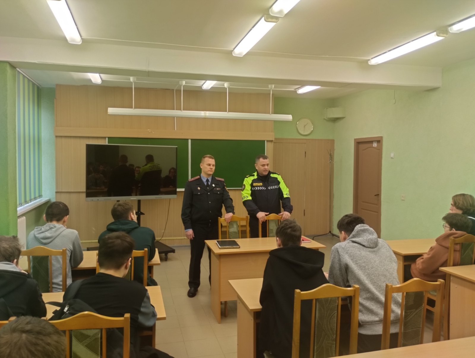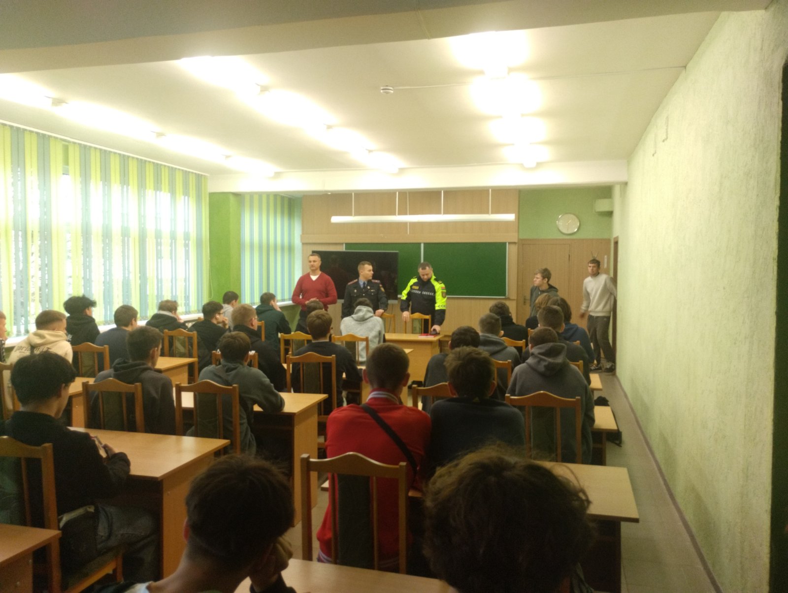 18 ноября перед учащимися колледжа выступили начальник ОГАИ МОБ Центрального РУВД г. Минска подполковник милиции Мозенза В.В. и заместитель начальника ООПП МОБ майор милиции Зеленков Н.С.