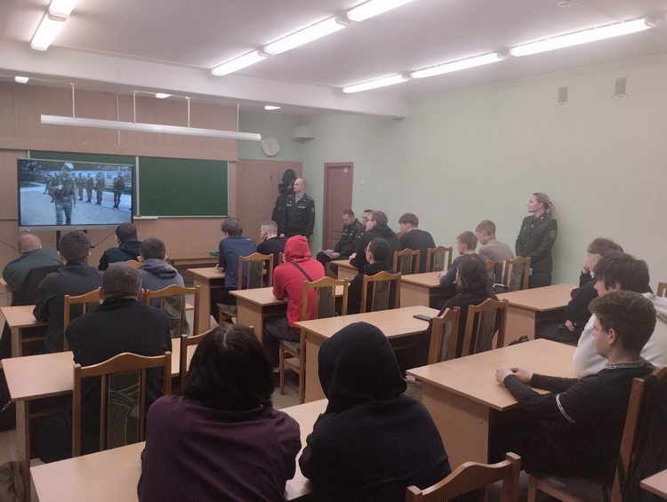 Учащимся было рассказано о службе в пограничных войсках, об условиях срочной и контрактной военной службы, условиях поступления в Институт пограничной службы Республики Беларусь. Затем учащимся были даны ответы на интересующие их вопросы.