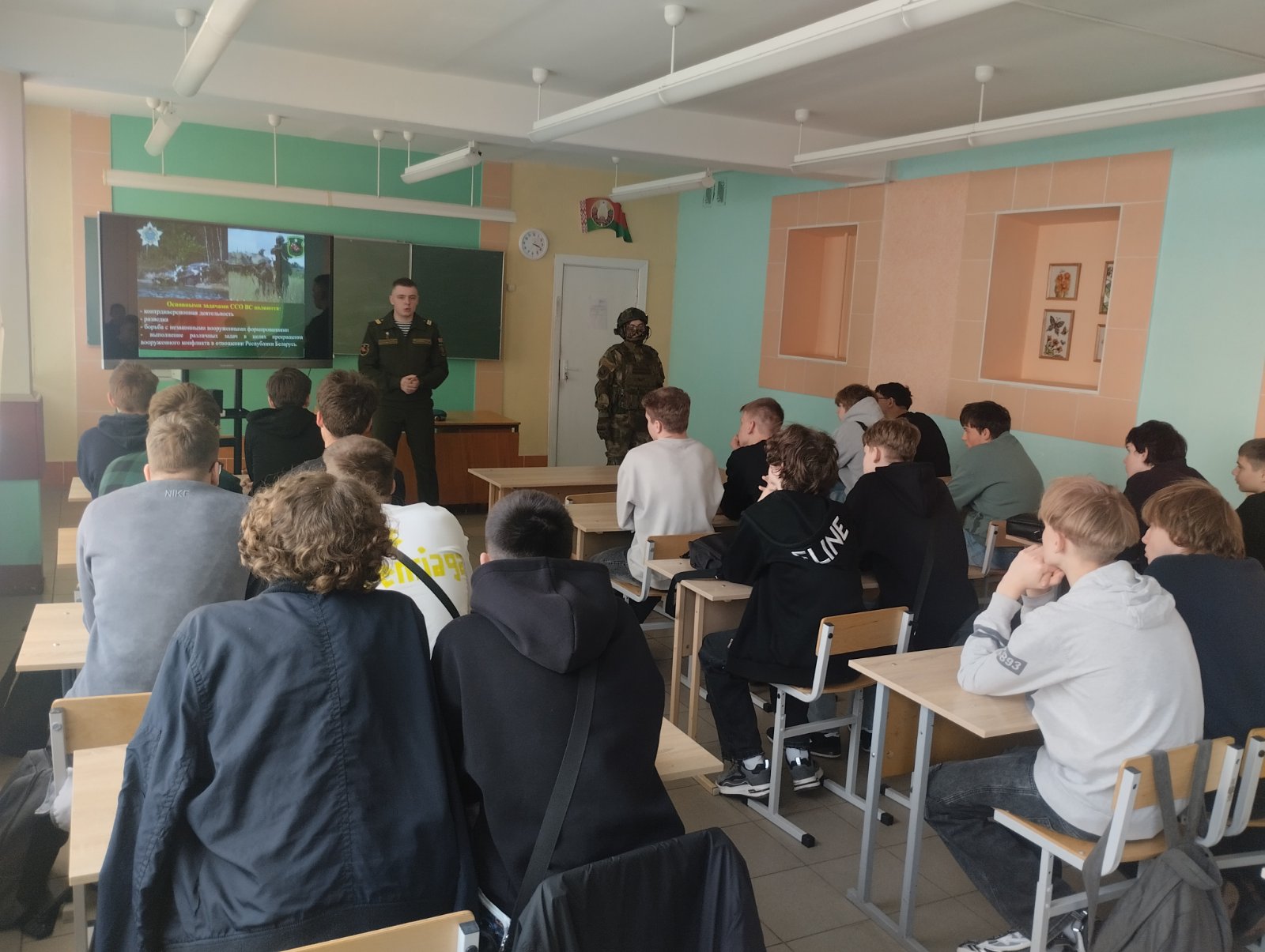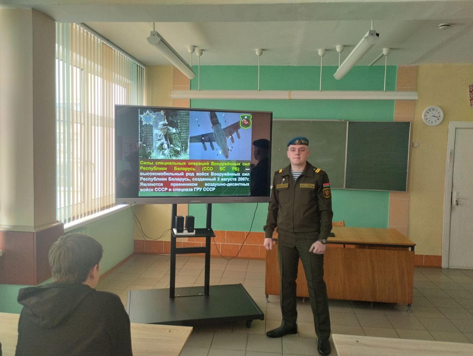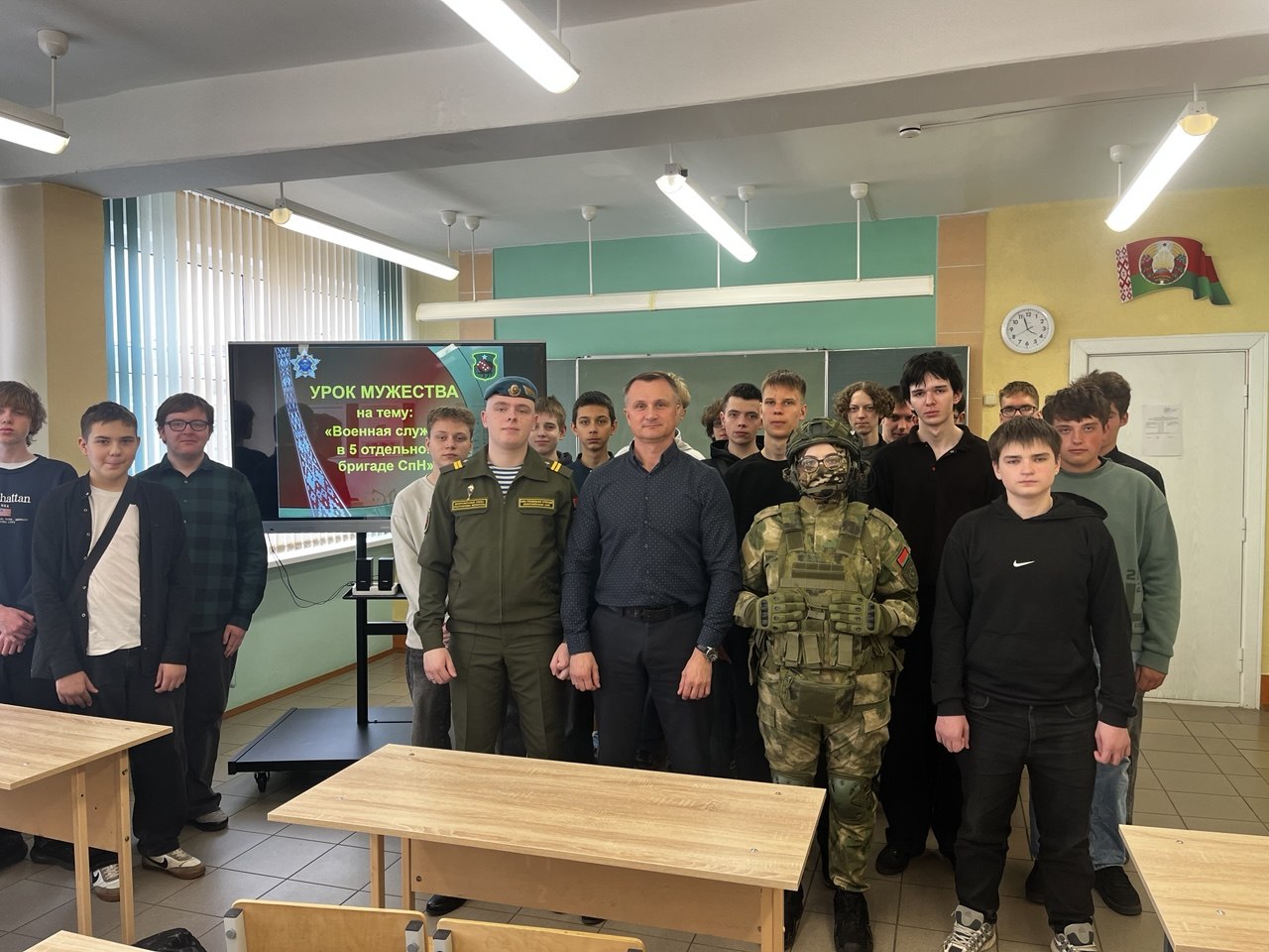 Также ребята ознакомились со службой в самой бригаде, с условиями срочной и контрактной военной службы. Затем учащиеся посмотрели видеофильм об Вооруженных Силах Республики Беларусь и имели возможность ознакомиться с экипировкой военнослужащего спецназа.