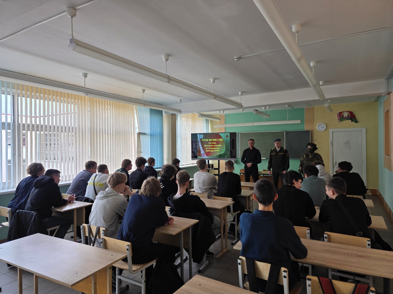 Учащимся было рассказано об истории создания бригады, об участии бригады в горячих точках мира, международных и республиканских учениях, о героях бригады.