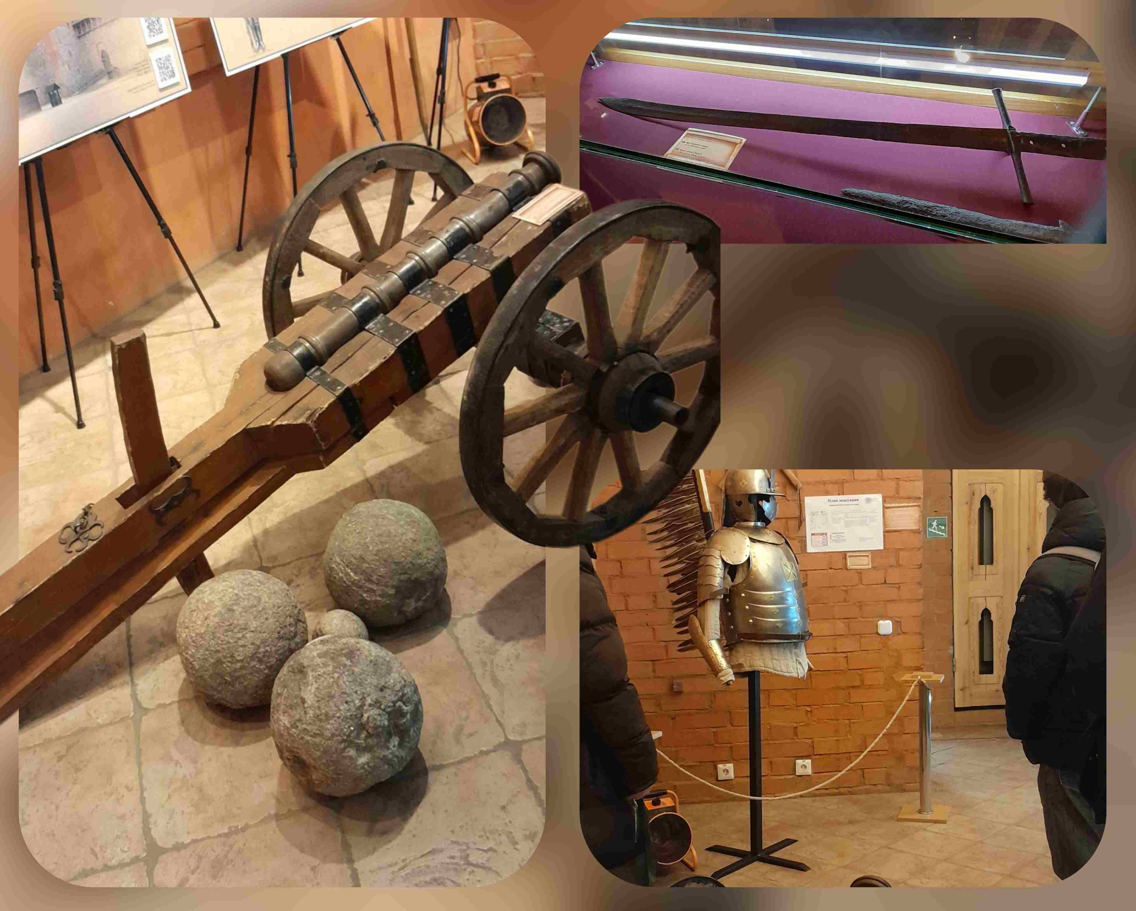 В этом смогли убедиться наши ребята, осматривая экспонаты музея: меч весил до 20 килограммов, кольчуга от 5 до 15. Вес доспехов достигал сотни килограммов!