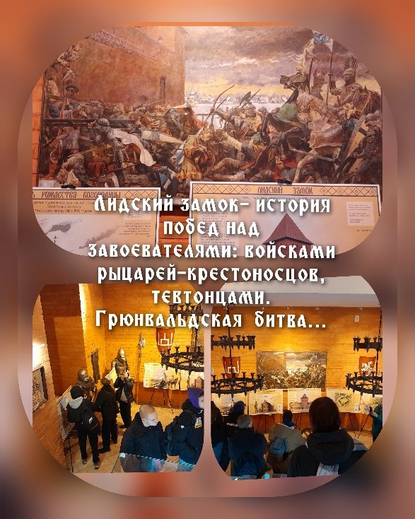 Наша экскурсия была посвящена героическому прошлому Лидского замка и его защитникам, воинам лидской хоругви, которые принесли победу над крестоносцами в Грюнвальдской битве.