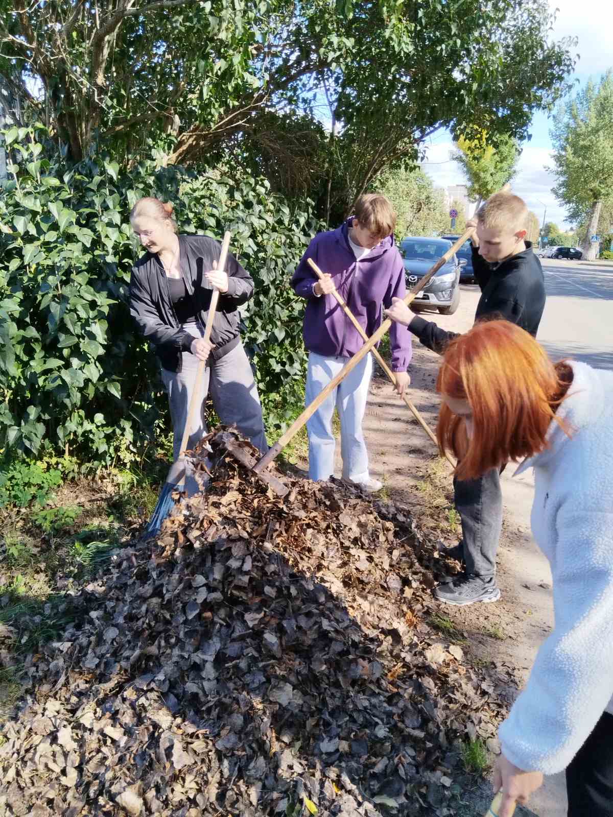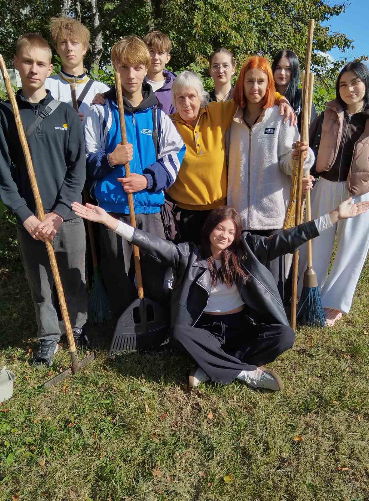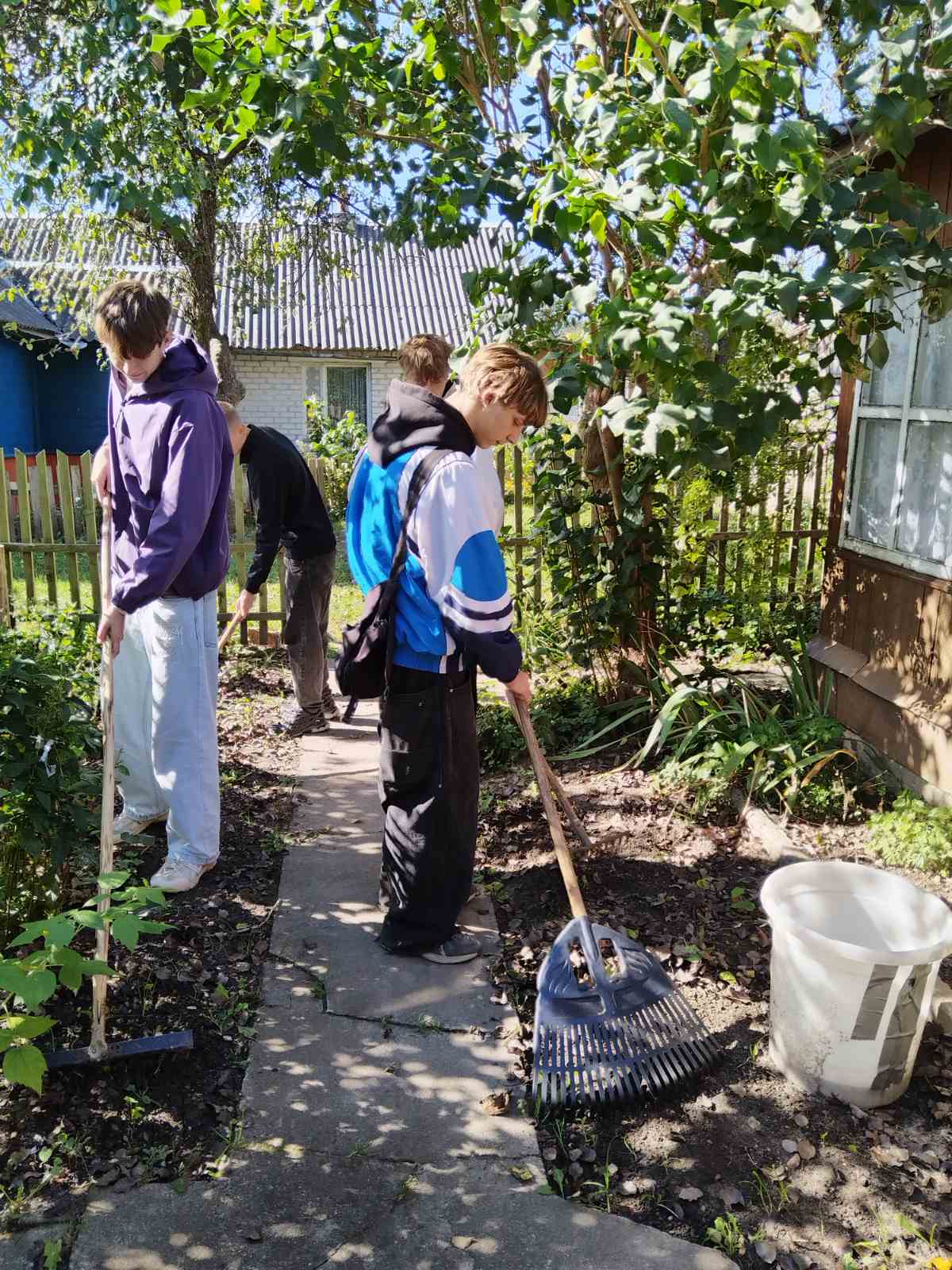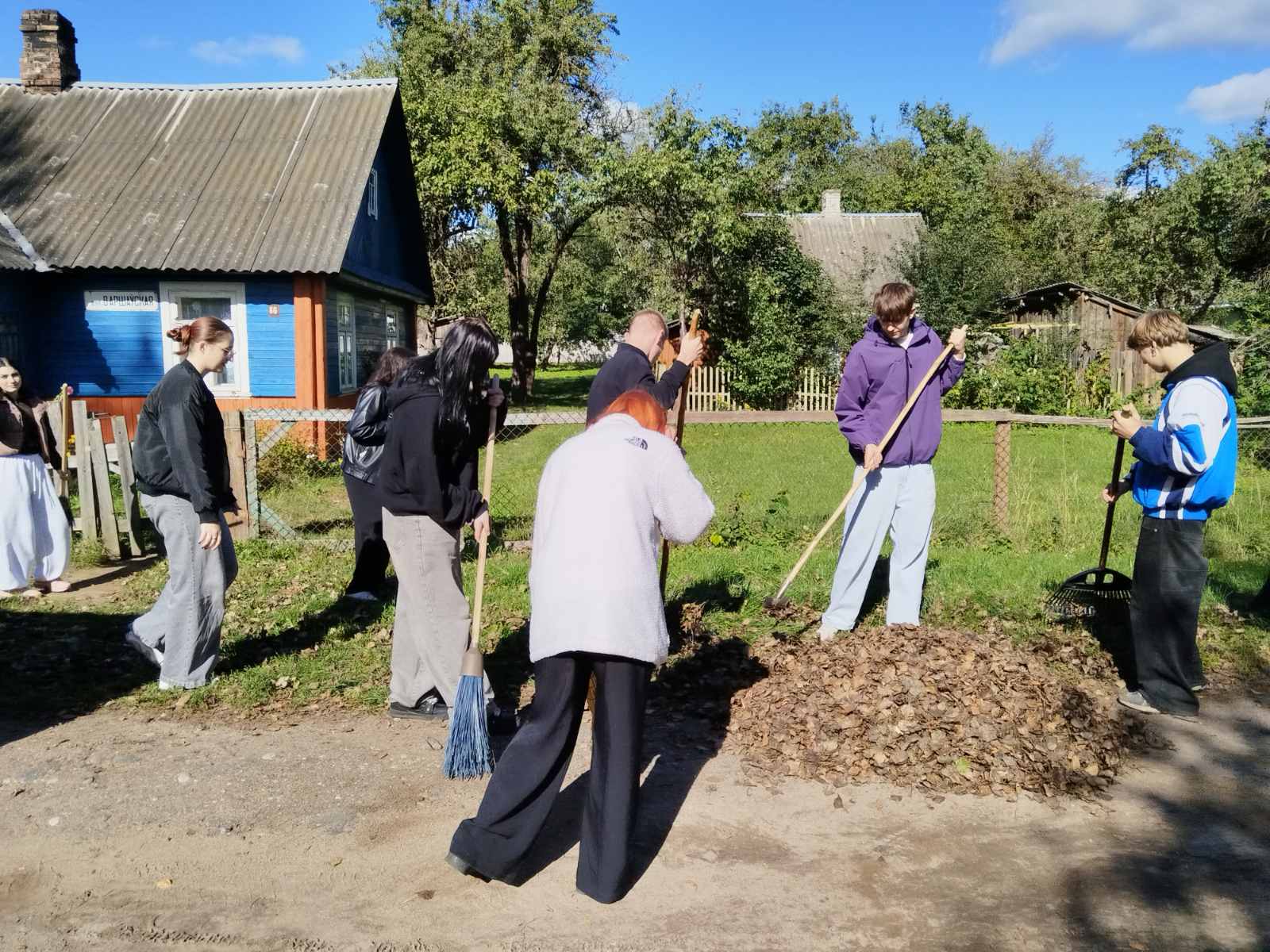 Вместо традиционных поздравлений ребята решили оказать реальную помощь. Узнав о том, что пожилая женщина с трудом справляется с уборкой своего двора, учащиеся взяли инициативу в свои руки. Вооружившись граблями, метлами и мешками для мусора, они навели порядок на ее участке.