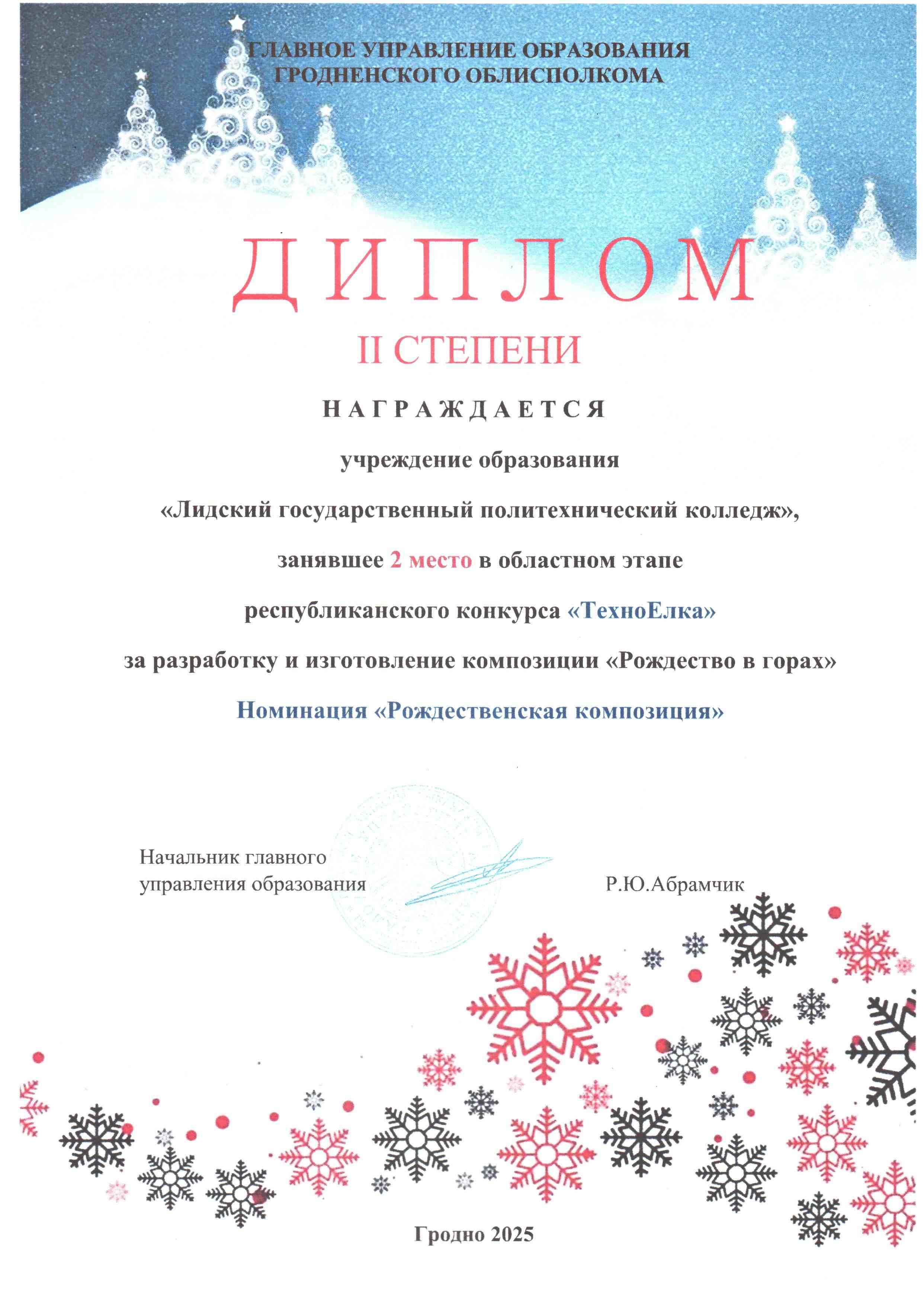 - 2025 - Диплом II степени - УО "Лидский государственный политехнический колледж"