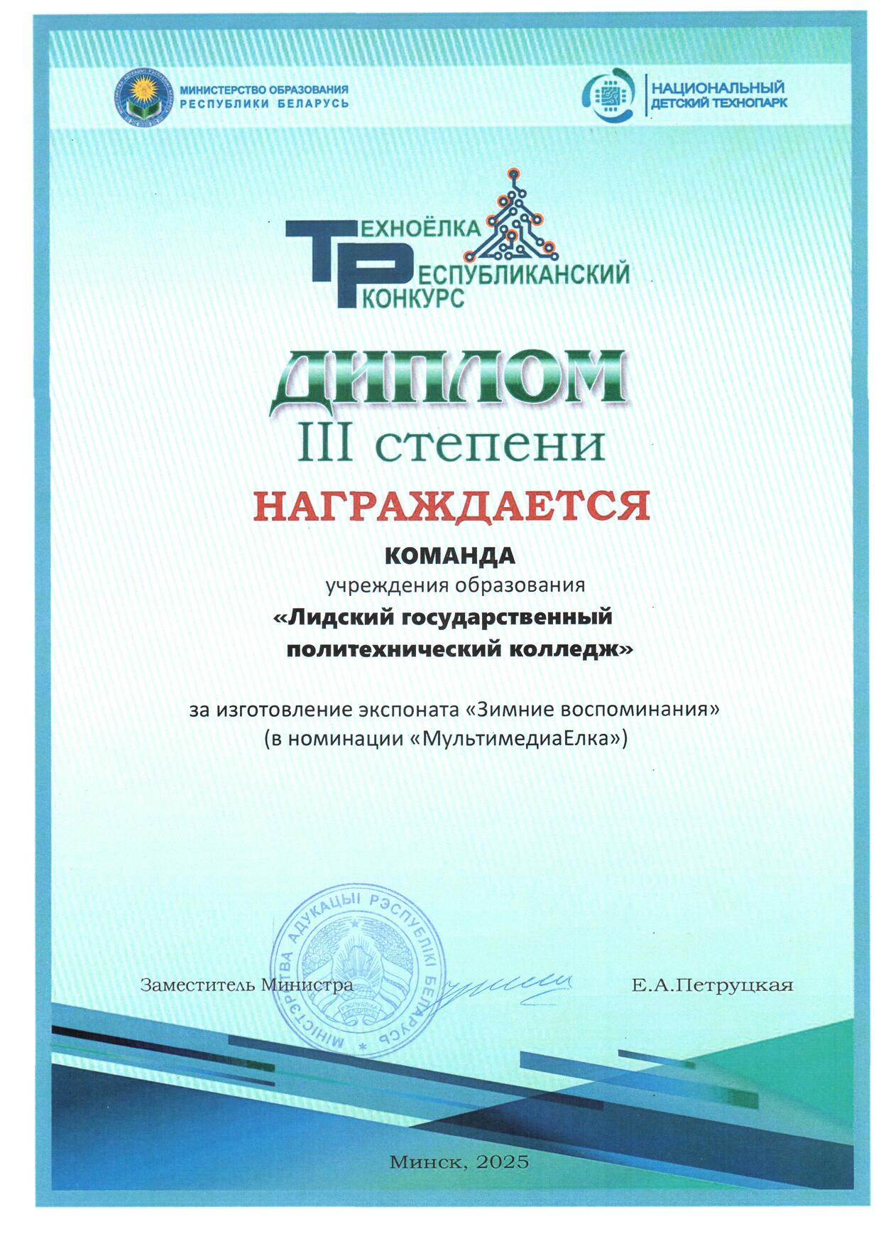 2026 - Диплом III степени - Разработчики - Ласовская С.И. и Ярош В.В., изготовитель: Жидок Никита - учащийся