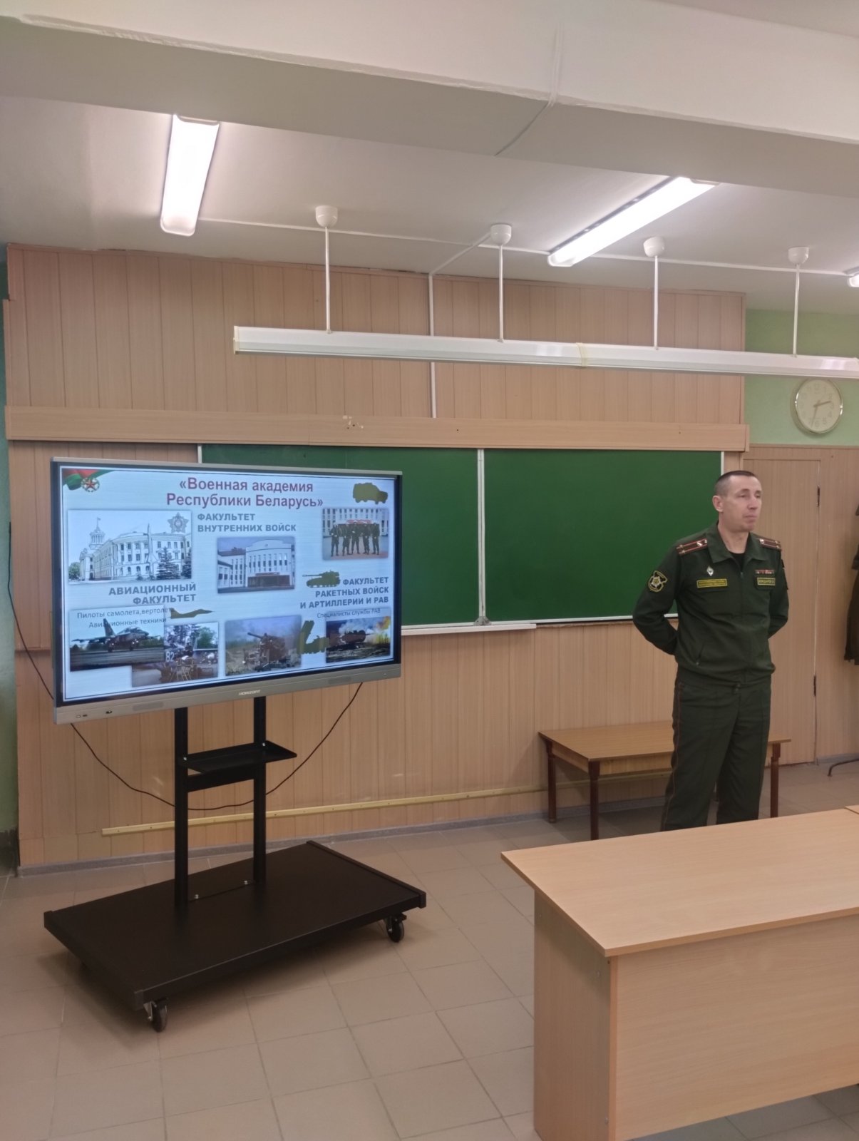 Встреча проходила в формате диалога, где ребята задавали вопросы, на которые получили разъяснение от подполковника Бондарева В.А. Было очень информативно и полезно для всех, кто задумывается о будущем в Вооруженных Силах Республики Беларусь!