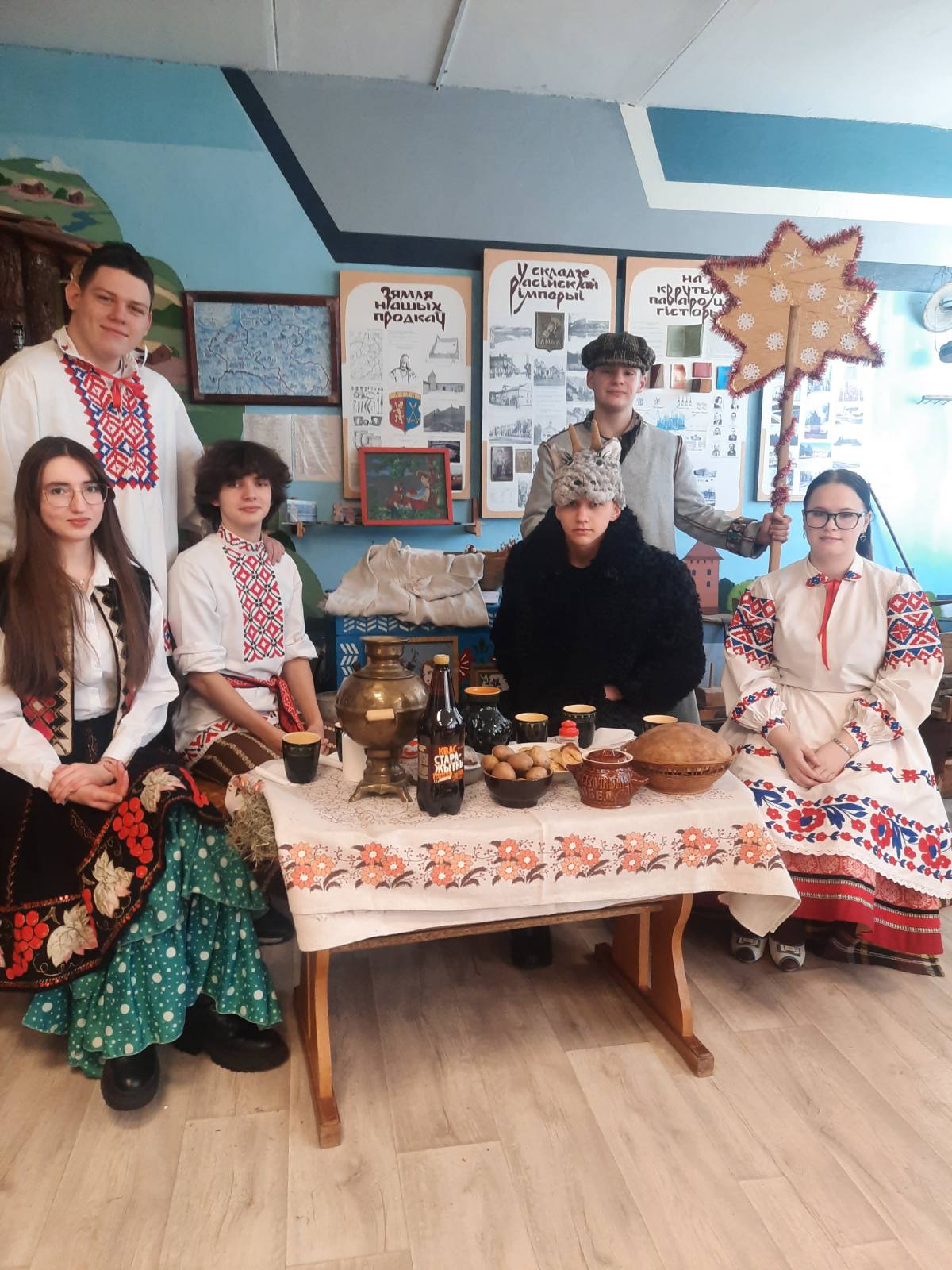 Команда проекта "Здравствуйте!", колядуя по колледжу, наконец, добралась и до музея "Спадчына", где совместно с членами клуба "Истоки" провела мероприятие в целевой группе проекта, которое призвано вспомнить наши корни, дало возможность испить чистой живительной влаги из родников нашей веры, прикоснуться к традициям нашего народа.
