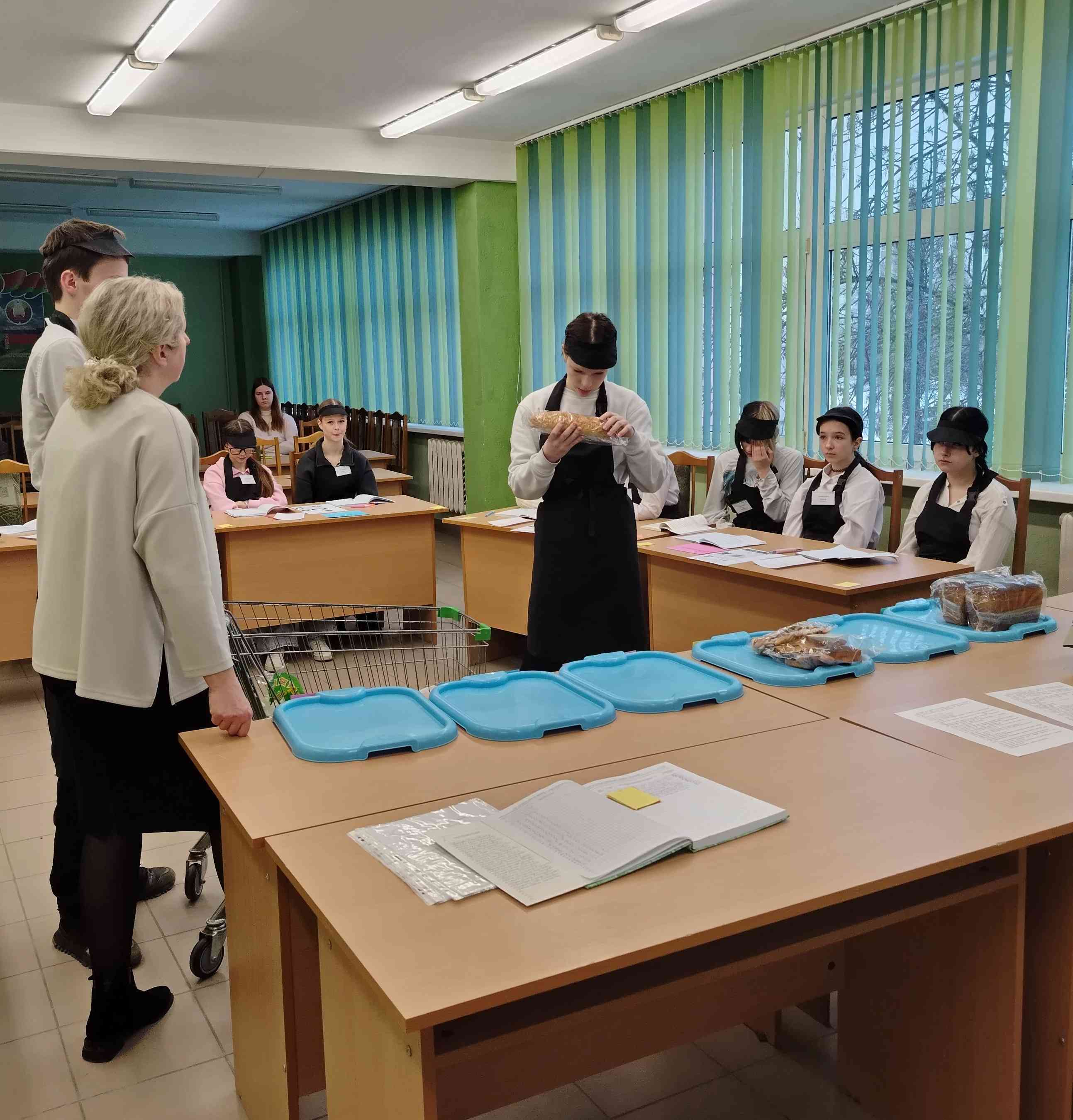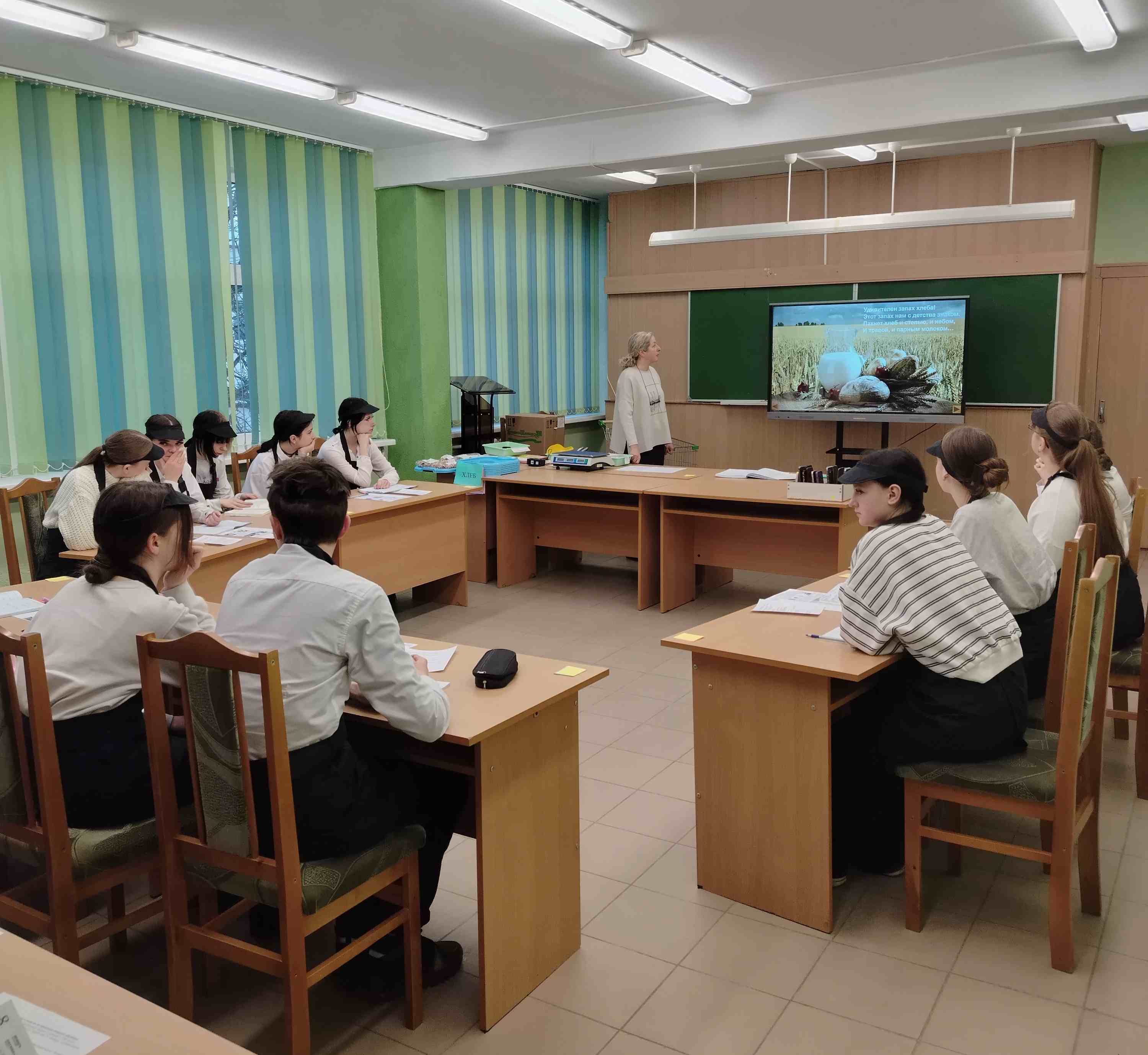 Мастер производственного обучения Елена Петровна Жилич объяснила новый материал и на личном примере показала последовательность выполнения отдельных приемов при подготовке к продаже хлебобулочных изделий. В ходе урока использовано большое количество натуральных образцов хлеба и хлебобулочных изделий.