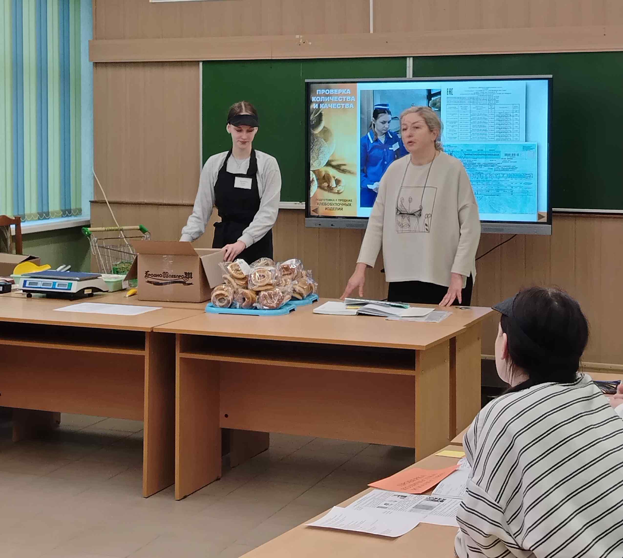 В колледже в группе 404 1 курса по специальности "Торговое обслуживание" квалификации "Продавец" прошло открытое учебное занятие по теме: "Подготовка к продаже хлебобулочных изделий".